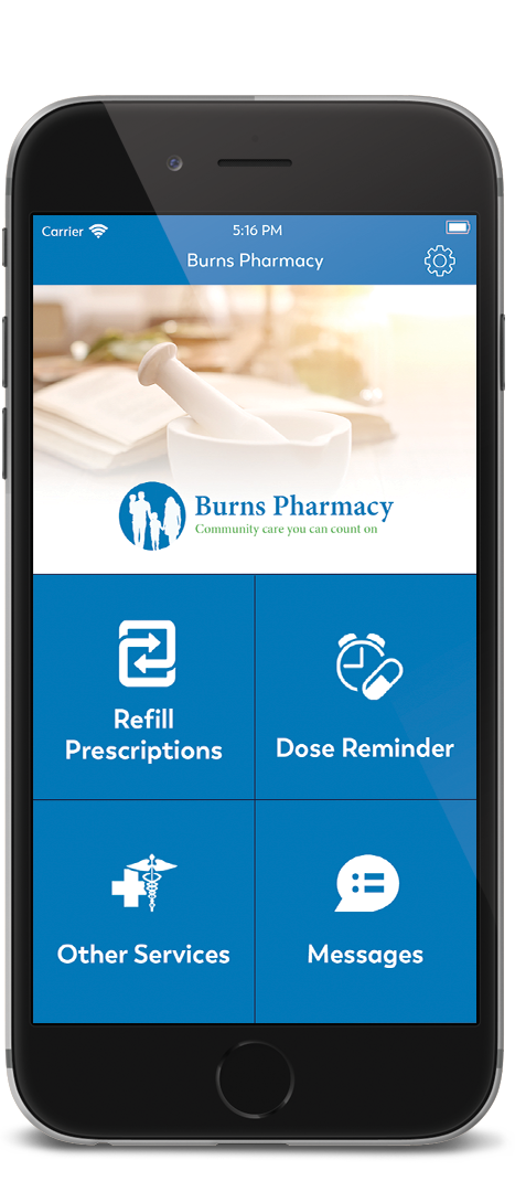 Download the app, enter our code 7119526 and select Burns Pharmacy